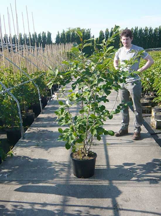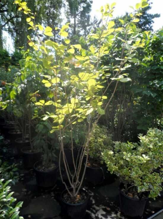 Wuchs: | Großstrauch, breit aufrecht und ausladend, später trichterförmig, 4 bis 6 m hoch und ebenso breit. |