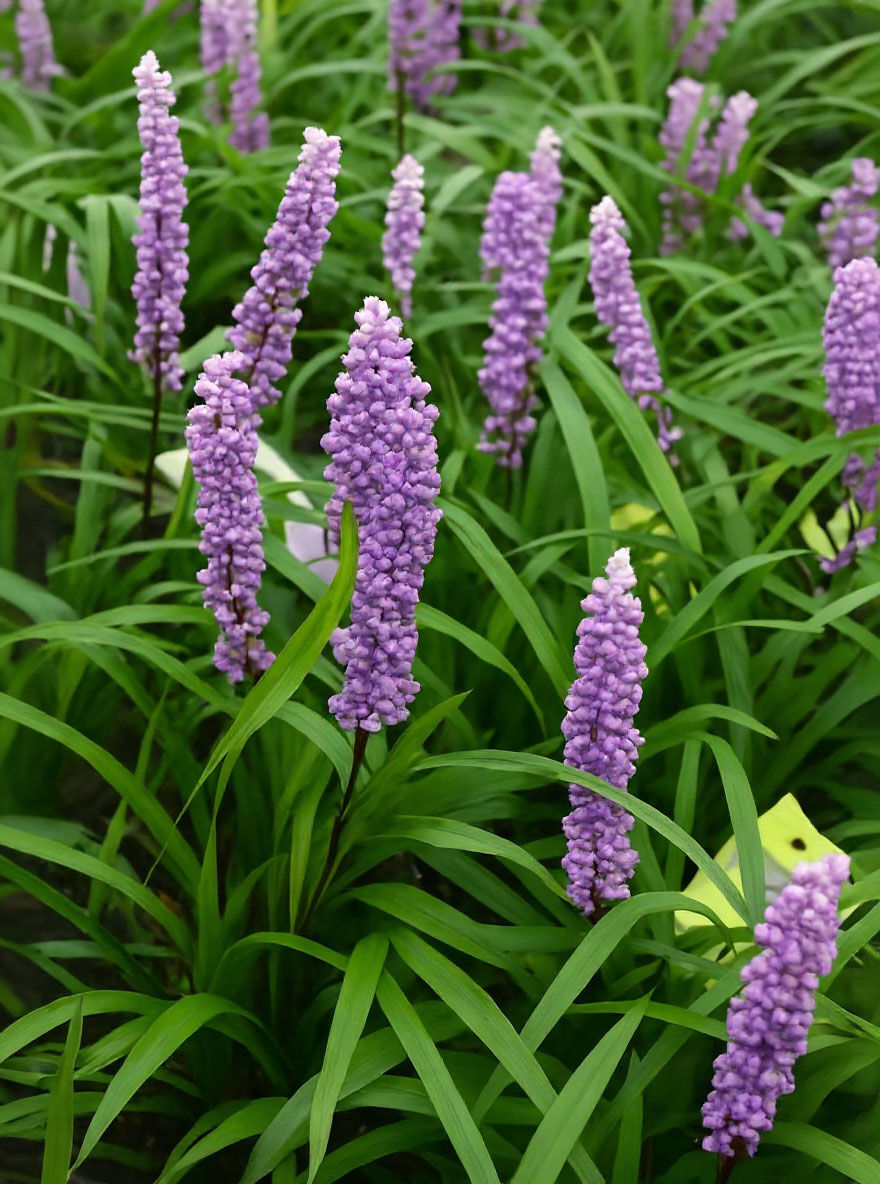 | Eigenschaften: | Die Liriope muscari 'Moneymaker' (Glöckchentraube / Lilientraube) verziert den Garten mit dekorativen, violetten Blütentrauben, die bis 50 cm hoch in die Luft ragen. Sie überzeugt jedoch nicht nur mit einem hübschen Aussehen, die Blütenstaude ist ebenfalls auf Grund ihrer robusten Eigenschaft sehr beliebt. Sie ist winterhart und mehrjährig und benötigt kaum Aufmerksamkeit. Mit den richtigen örtlichen Begebenheiten ist sie zufrieden. Pflanzen Sie die Lilientraube auf einem frischen, durchlässigen bis drainierten Boden im Halbschatten und achten Sie dabei auf einen Pflanzenabstand von 30 cm. Mit dem polsterartigen Wuchs eignet sich die Staude als Bodendecker und kann so toll Steinanlagen und Gehölzränder zieren. Auch in Kübeln macht Sie ein tolles Bild. Im April und Mai werden die alten Blätter vom Neuaustrieb überwachsen, weshalb ein Rückschnitt nicht nötig ist. |