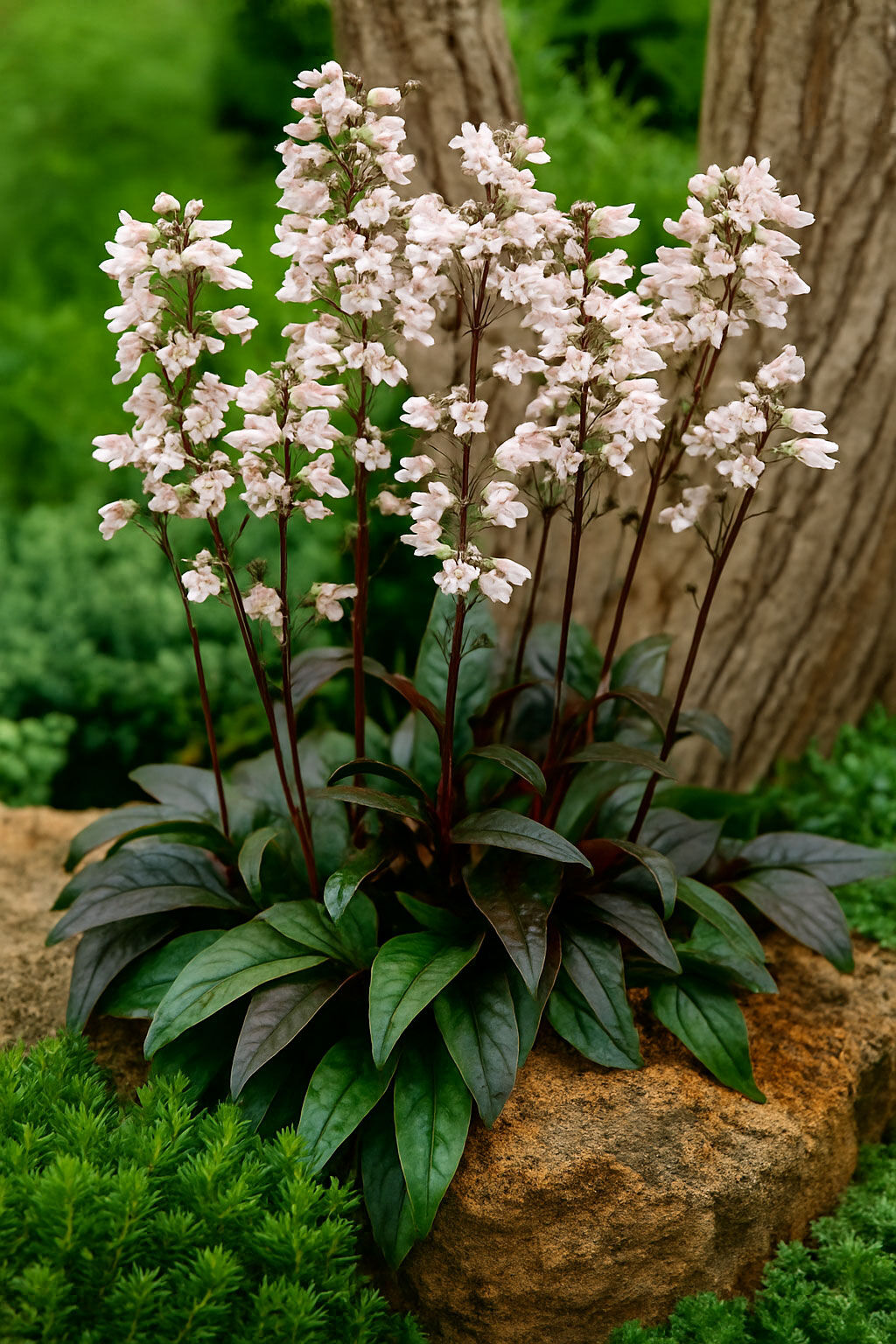 | Eigenschaften: | Der Penstemon digutalis 'Husker Red' (Fingerhut-Bartfaden) bildet durch seinen hohen Wuchs und den rotbraunen Blättern einen tollen Hingucker im Garten. Die Blätter haben einen tollen Effekt und springen direkt ins Auge. Die winterharte Staude mit dem wintergrünen Laub schmückt den Garten bis in den Winter hinein. Die Samenstände der Staude bilden dann ebenfalls eine zierende Pracht. Pflanzen Sie den Fingerhut-Bartfaden als Solitärpflanze zwischen anderen Sträuchern alleine oder in Gruppen mit 40 cm Abstand. Am Gehölzrand sollte ein sonniger bis halbschattiger Ort auf einem nährstoffreichen Boden gewählt werden. Im Staudenbeet kann sie hinten gepflanzt werden, da sie mit ihrem hohen Wuchs überragt. Auch als Bienenweide oder Schnittpflanze in einer Vase ist die Husker Red ein tolles Element. Eine weiße Schönheit die mit wenig Aufwand Freude macht.. |