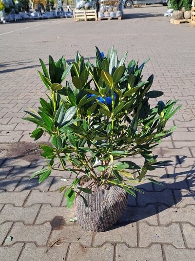 | Blatt: | Immergrün, lanzettlich, am Ende zugespitzt, leicht nach oben gewölbt, ledrig, dunkelgrün glänzend, 8 bis 15 cm lang. |