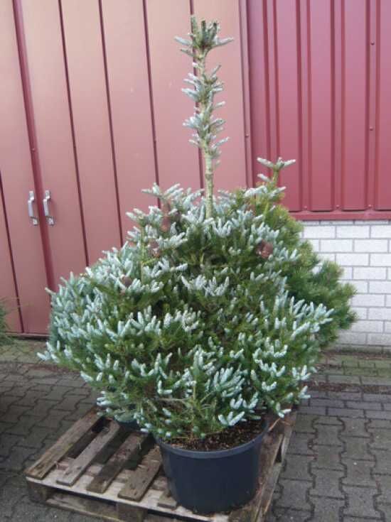 Das Besondere sind die leicht nach oben gedrehten Nadeln, die ihre silbrig-weiße Unterseite zeigen – dadurch wirkt der Baum, als hätte er ständig einen feinen Glanz. Ein echtes Highlight, das das ganze Jahr über dekorativ bleibt.