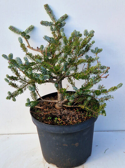 Korea-Tanne (Abies koreana) 'Silberlocke', 25–30 cm, im C3-Topf, junger Nadelbaum mit dichtem Wuchs und kurzen Trieben.