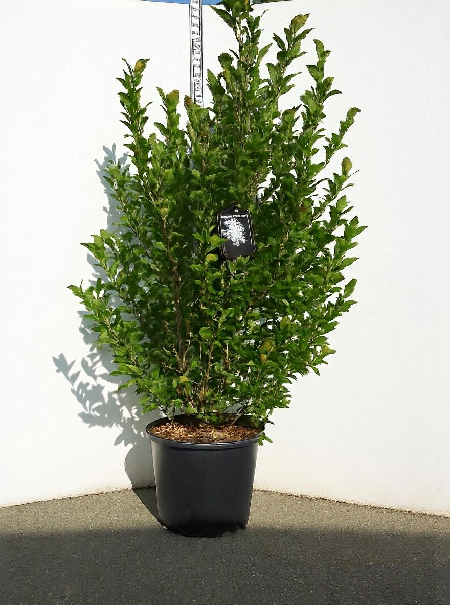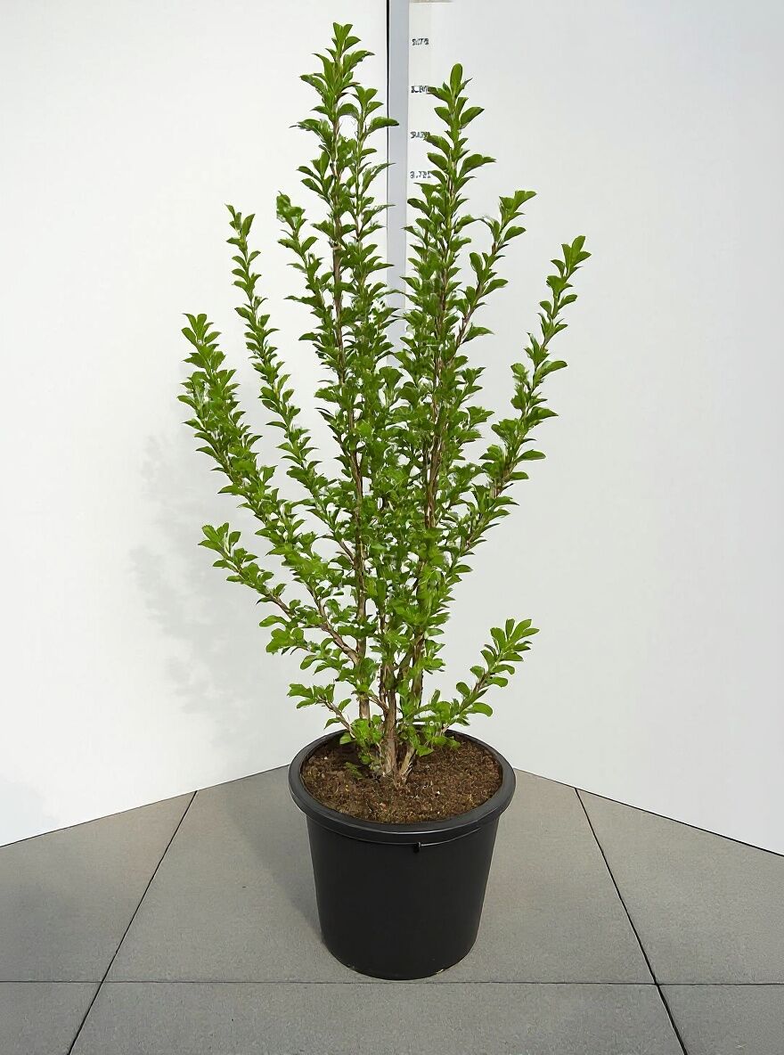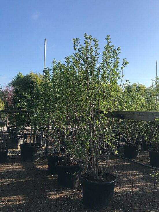 | Wuchs: | Großer Strauch oder kleiner Baum, breit-kegelförmig, kräftig, senkrecht wachsende Äste, 5 bis 9 m hoch und 4 bis 6 m breit |