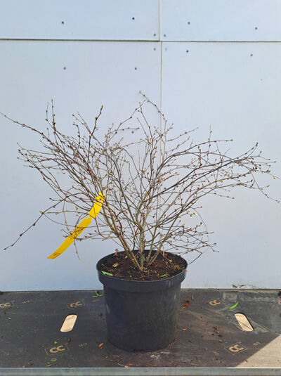Ährige Scheinhasel (Corylopsis spicata) 40–50 cm C5, laubfreier Strauch im schwarzen Pflanztopf mit vielen Trieben.