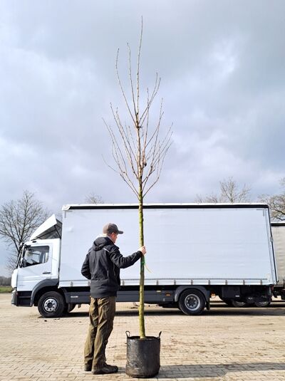 | Detaillierte Beschreibung: | Herkunft und Besonderheiten der Prunus serrulata ’Pink Perfection‘Prunus serrulata ’Pink Perfection‘ verwöhnt den Garteninteressierten mit einer attraktiven, tiefrosafarbenen Blüte und einer malerischen Wuchsform. Die Selektion beschert traumhafte Gartenimpressionen und bringt einen Hauch von Asien in unsere Breiten. Den fachkundigen Botaniker erinnert ’Pink Perfection‘ an die verwandte Züchtung ’Kazan‘, sie unterscheidet sich aber durch eine hellere Blütenfarbe und durch besonders biegsame Äste. Diese hängen leicht über und verleihen der asiatischen Schönheit eine besonders romantische Ausstrahlung, die sie zu einem sehenswerten Highlight macht. Asiatische Pflanze ist in Deutschland schon lange sehr beliebtDie Ausgangsart Prunus serrulata gehört zur Familie der Rosengewächse und zur Gattung der Prunus. Sie ist in Europa schon lange fester Bestandteil unserer heimischen Ziergärten und gelangte im Jahre 1913 aus ihrer Heimat nach Europa und in den Rest der Welt. Ursprünglich wächst diese Zierkirsche aber in China, Korea und Japan und bezaubert dort in der freien Natur. Die Zierkirsche wird für ihre üppige Blütenpracht geliebtPrunus serrulata ist im deutschsprachigen Raum unter dem Namen Japanische Blütenkirsche oder Japanische Nelken-Kirsche bekannt. Sie wird vor allem aufgrund ihrer lieblichen Blüte verehrt und findet vielerorts Verwendung, um mit ihrem Zierwert zu beeindrucken. Mittlerweile wurde eine Vielzahl an Selektionen kultiviert, die jedem Kirschbaumfan ermöglicht, sich an der Schönheit zu erfreuen. Blütenkirsche ‘Pink Perfection‘ wächst zügig und wird circa 8 Meter großPrunus serrulata ’Pink Perfection‘ gehört zu den schnellwachsenden Selektionen der Blütenkirsche und begeistert bereits nach wenigen Jahren mit dem Anblick eines Großstrauchs oder kleinen Baum. Ihre Endhöhe von circa 8 Metern wird selten überschritten, sodass sich die Züchtung auch für den eigenen Hausgarten anbietet. Malerische Wuchsform durch überhängende ÄsteDie Hauptäste dieser Nelkenkirsche streben straff aufrecht in Richtung des Himmels und formen eine trichterförmige Baumkrone, die bis zu 5 Meter breit wird. Da die Zweige recht biegsam sind und im Verlaufe des Wachstums leicht überhängen, wirkt die Wuchsform der Selektion sehr malerisch und formschön. Sie hinterlässt einen bleibenden Eindruck und bereichert jeden Standort mit ihrem exotischen Charme. Dezente Baumrinde in BrauntönenDie Rinde der Prunus serrulata ’Pink Perfection‘ zeigt sich recht dezent. Eine bräunliche Borkenfarbe und rötlich schimmernde Jungtriebe bilden ein schönes Gesamtbild in Kombination mit dem frischen Blattwerk. Blattwerk der Prunus serrulata ’Pink.... |