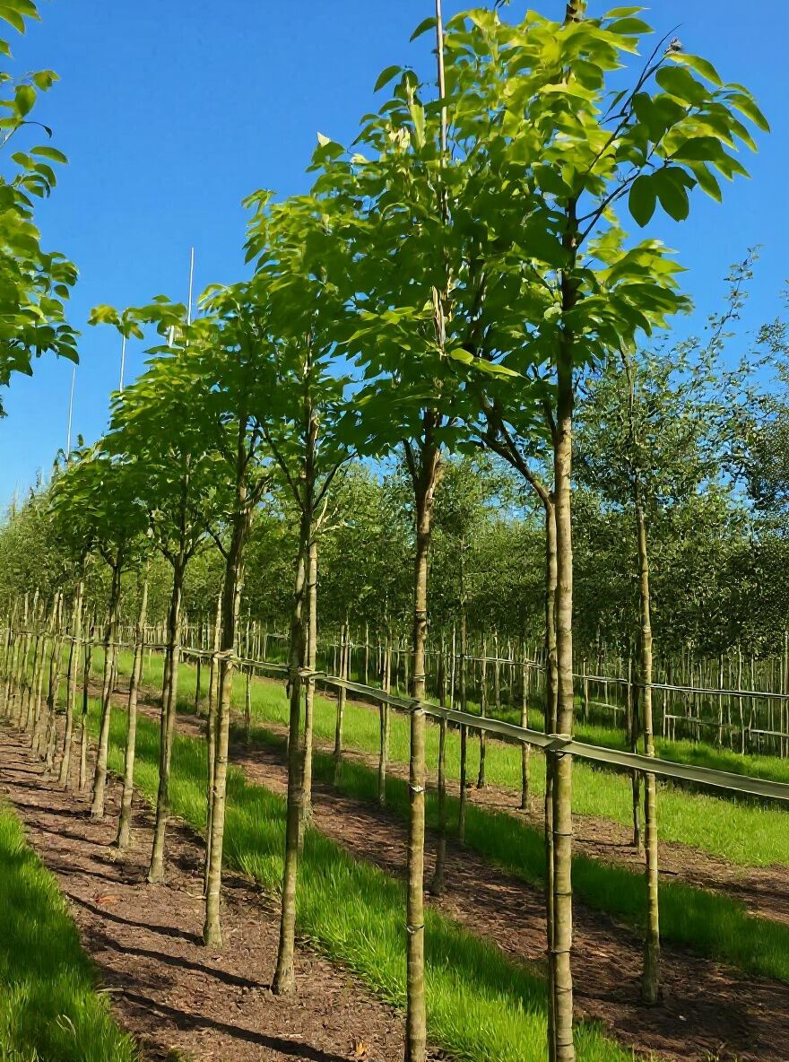 Der Stamm der Selektion glänzt gräulich-braun und ist glatt, die jungen Zweige tragen eine gelblich-grüne Rinde und bilden einen interessanten Kontrast zu dem frischen Blattwerk und der Blüte. Sie hinterlassen einen originellen Anblick und betonen die exotische Ausstrahlung der asiatischen Pflanze.
