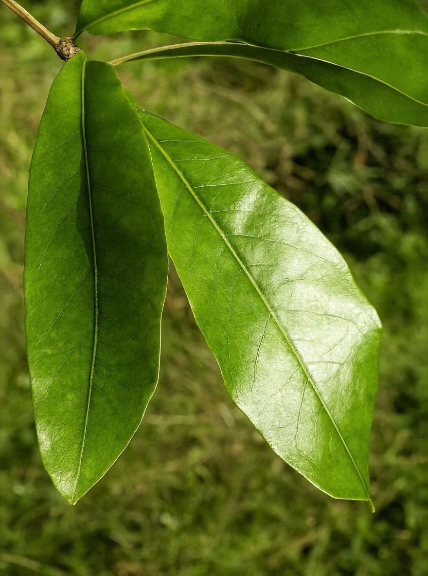| Blatt: | Sommergrün, länglich bis oval, glatte Oberfläche, glatter bis leicht welliger Rand, Oberseite dunkelgrün glänzend, Unterseite hellgrün und behaart, braunrote Mittelrippe, Herbstfärbung gelblichbraun, 8 bis 15 cm lang und 5 cm breit |