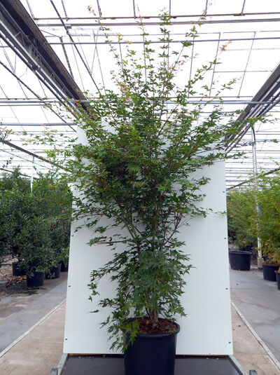 Japanischer Ahorn (Acer palmatum 'Deshojo') im Topf, mehrstämmiger Wuchs, grüne fächerförmige Blätter, 175–200 cm, C50