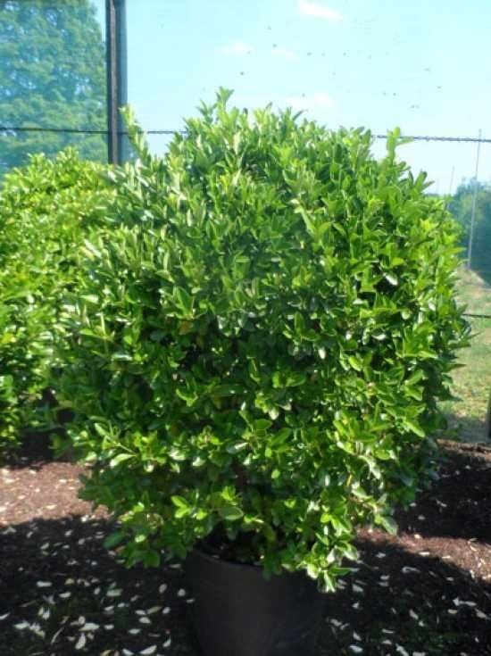 Blatt: | Immergrün, oval bis länglich, stumpf gesägter Rand, ledrig, dunkelgrün glänzend, bis zu 5 cm lang |