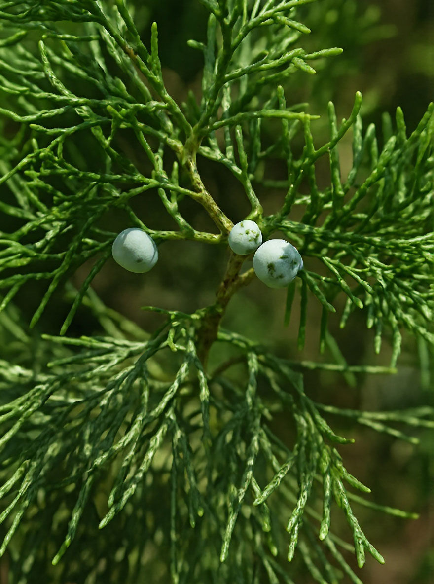 | Frucht: | Unscheinbare kugelige Beerenzapfen. |