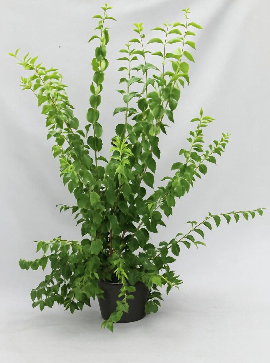 | Wuchs: | Kleiner bis mittelgroßer Strauch, breitbuschig, kompakt, später überhängend, bis zu 3 m hoch und 2 m breit |
