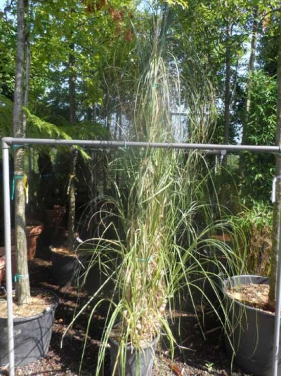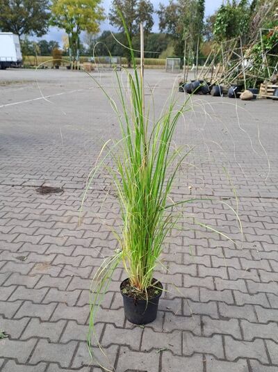 Blüte: Silberweiße Blütenwedel, aufrecht, sehr zierend, bis zu 2 m lang.