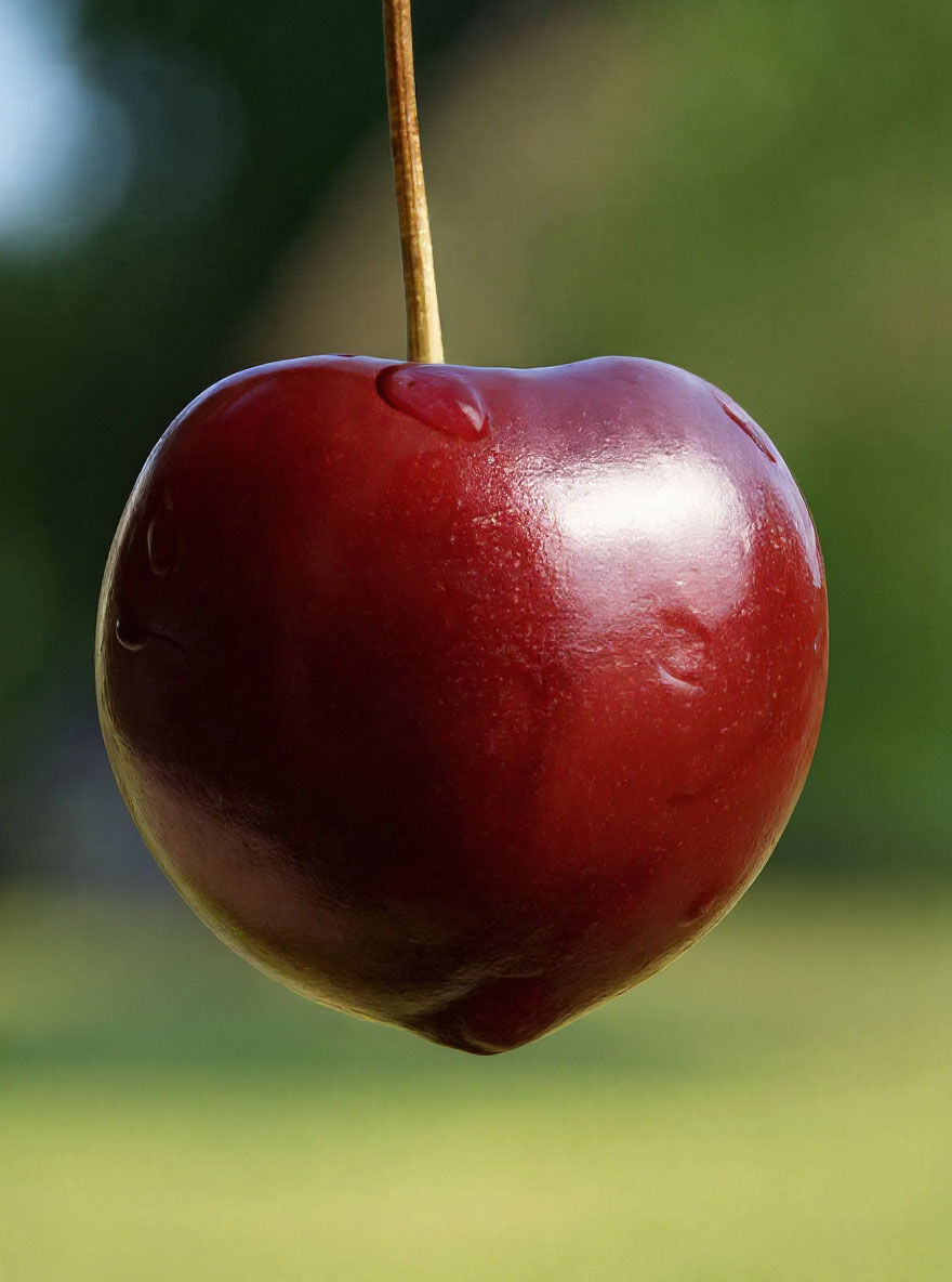 | Frucht: | Mittelgroß, rundlich, violettbraun, mittelfestes und dunkelrotes Fruchtfleisch, süßsäuerlich im Geschmack, bis zu 2 cm groß |