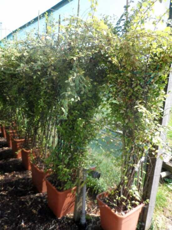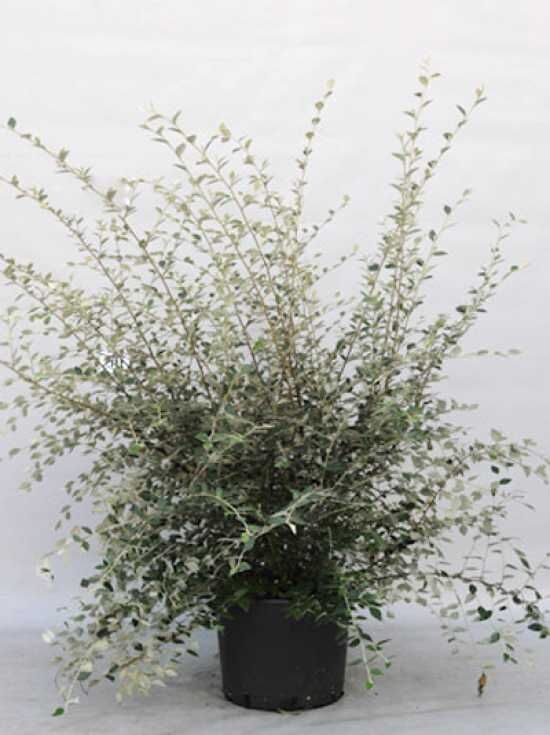 | Wuchs: | Mittelgroßer Strauch, trichterförmig, später überhängende Seitenäste, bis zu 2 m hoch und ebenso breit. |