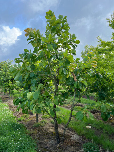 Das Wurzelsystem der Japanischen Kaiser-Eiche strebt tief in den Untergrund und verankert ihn fest in den dortigen Bodenschichten, sodass eine ausreichende Versorgung mit Wasser und Nährstoffen garantiert wird.