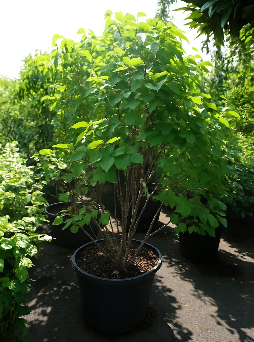 Frischgrünes Blattwerk des Edelflieders ’P.P. Konchalovskii‘ lässt den Garten strahlen