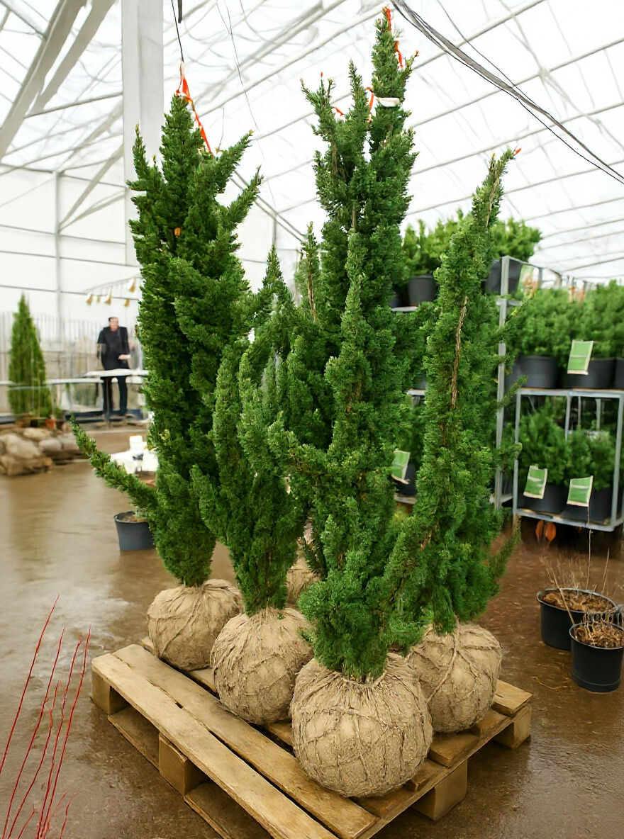 Chamaecyparis lawsoniana 'Wisselii' / Scheinzypresse 'Wisselii' 150-175 cm m. B., aufrechte grüne Konifere mit Ballenware.