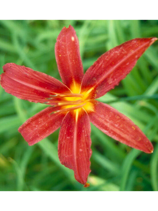 Eigenschaften: | Das Hemerocallis 'Sammy Russel' (Garten-Taglilie / Beet-Taglilie) beeindruckt mit der tiefroten Blüte, die den ganzen Sommer hindurch den Garten ziert. Ein orangener Schlund in der Blüte wirkt zusätzlich dekorativ. Die Garten-Taglilie ist eine wärmeliebende Sorte, die gerne in der Sonne steht und hier Freiflächen, Bette oder Gehölzränder ziert. Ein durchlässiger Boden und 50 bis 70 cm Pflanzenabstand begünstigen die tolle Blüte von Juli bis September. Im Winter friert sie komplett zurück. Im zwei bis drei jährigen Rhythmus sollte die Taglilie geteilt und neu gepflanzt werden. Ein schönes, wertvolles Zierelement, das auch als Schnittblume fungieren kann.. |