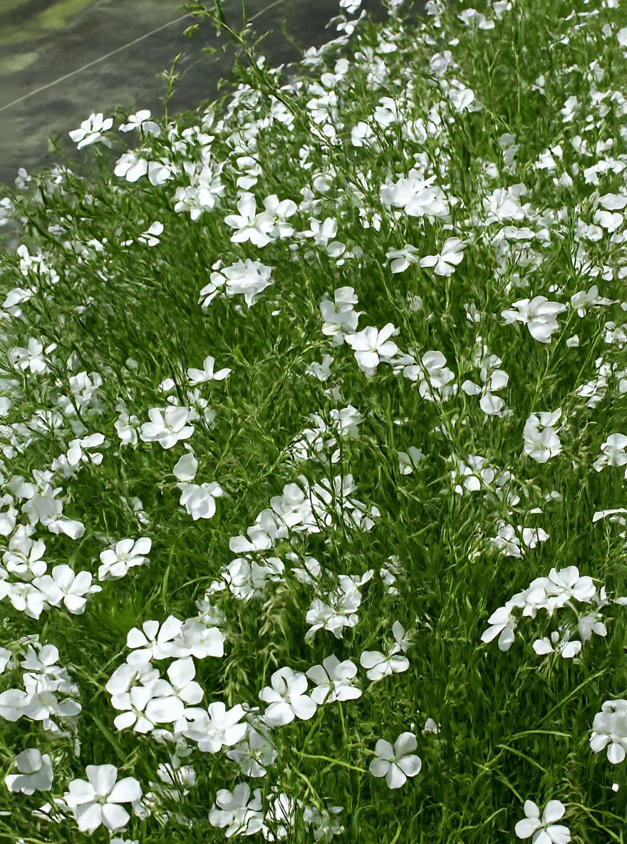 Die Attraktivität des Linum perenne 'Diamant' liegt in der harmonischen Verbindung von zierendem Blattwerk und einer überreichen, luftigen Blüte. Während die Blüten für den optischen Höhepunkt sorgen, bildet das Laub den ruhigen, strukturellen Hintergrund, der die ganze Pflanzung auch außerhalb der Blütezeit interessant macht.