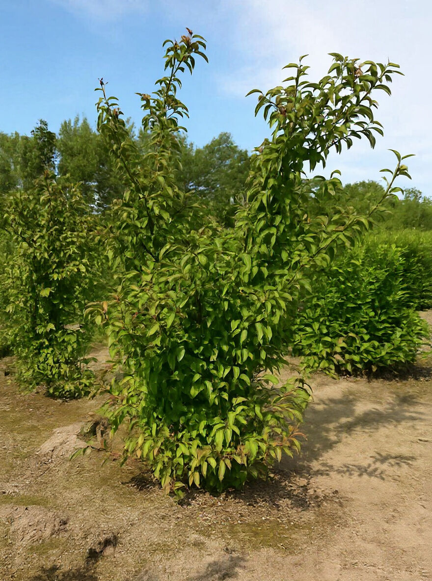 Wuchs: Kleiner Strauch, straff aufrecht und dicht verzweigt, später leicht überhängend, bis zu 250 cm hoch und ähnlich breit.