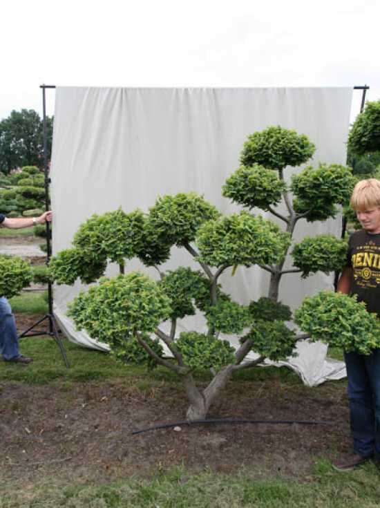 | Eigenschaften: | Die Ulmus minor 'Jacqueline Hillier' H: 230 cm B: 240 cm / Garten-Bonsai (101200) ist leider eine eher selten zu findende Bonsai-Variante in unseren heimischen Gärten. Dabei zeigt sie sich sehr stark gegenüber der typischen, holländischen Ulmenkrankheit. Aufgrund des kleinen Laubes und der schönen Verästellung mit auffälliger Rinde sicherlich eine interessante Basis für einen Bonsai.. |