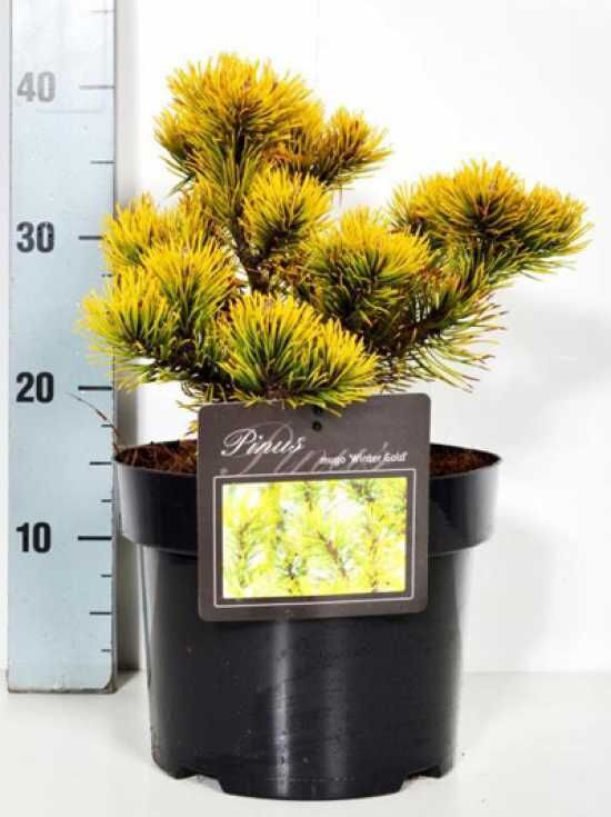 Name Botanisch: Pinus mugo 'Wintergold'.