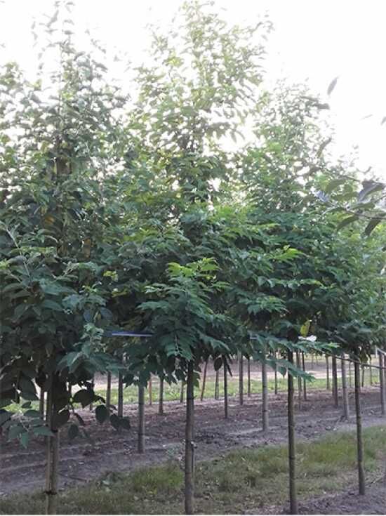 Das Blatt des Baums treibt im Frühjahr aus und strahlt in einem belebenden, satten Grün. Die Blättchen werden circa 15 Zentimeter lang und sind elliptisch. Sie haben ein zugespitztes Blattende sowie einen gesägten Blattrand und machen die Krone zu einem strahlenden Gartentraum, der Frische und Lebendigkeit ausstrahlt.