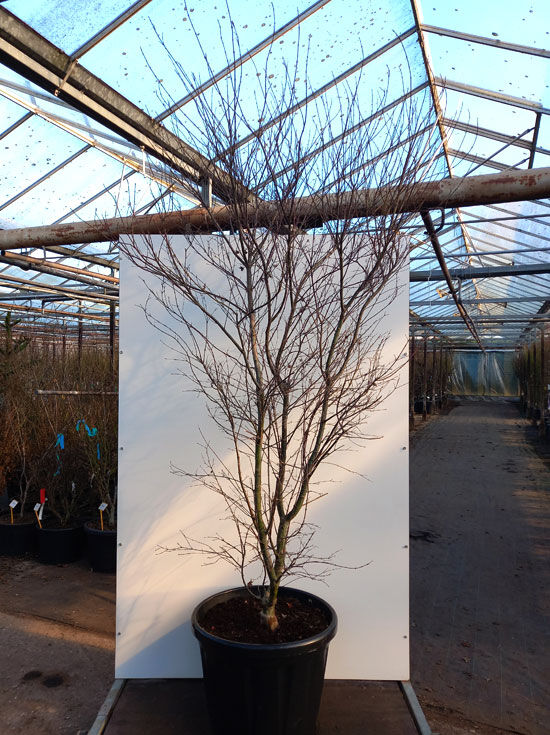 Japanischer Schlitz-Ahorn 'Beni-maiko' (Acer palmatum) 200-225 cm C110, mehrstämmiger, laubloser Baum im Container.