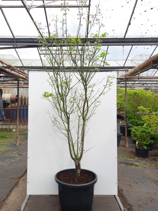 Ich war sofort begeistert, wie vital und klar aufgebaut Hogyoku angekommen ist. Der Wuchs ist gleichmäßig, der Stamm stabil und das Laub sattgrün und gesund. Im Herbst verwandelt sich der Baum in einen leuchtenden Blickfang. Ein Fächer-Ahorn, der sich schnell etabliert und zuverlässig wächst.