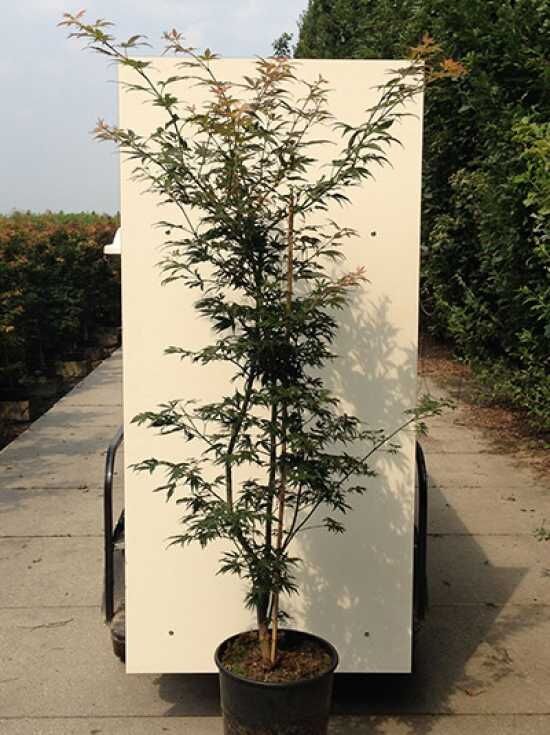 | Eigenschaften: | Der Acer palmatum 'Scolopendrifolium' / 'Shino buga oka' / Japanischer Fächerahorn 'Scolopendrifolium' zeichnet sich durch seine schmal-länglichen, filigranen Blätter aus, die stark Bambusblättern ähneln. Zudem erweist sich die dunkellila Borke als sehr zierend. Ein gut frosthartes und robustes Element, das garantiert Ihren Garten bereichern wird. Dieser Zierahorn ist heute auch unter dem Synonym Acer palmatum 'Shino buga oka' bekannt.. |