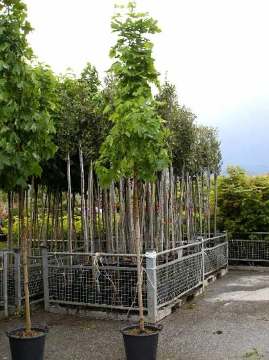 | Detaillierte Beschreibung: | Herkunft und Besonderheiten des Schatten-Ahorns / Acer platanoides ’Summershade‘Der Acer platanoides ’Summershade‘ ist eine amerikanische Selektion des heimischen Spitz-Ahorns und wurde im Jahre 1957 in den Baumschulhandel gebracht. Im deutschsprachigen Raum ist er unter dem Synonym Schatten-Ahorn bekannt und man trifft ihn an vielen Standorten im innerstädtischen Bereich. Robuster Baum, der für Hitze und Schatten geeignet istDer imposante Schatten-Ahorn erfreut sich aufgrund seiner extremen Robustheit einer großen Beliebtheit. Er ist besonders hitze- und strahlungsresistent und gleichzeitig schattenverträglich, was dem Gärtner eine vielfältige Nutzung an nahezu jedem Standort eröffnet. Gleichzeitig erfreut ‘Summershade‘ mit einer wunderschönen Kroneund einer prächtigen Wuchsform, die einen bleibenden Eindruck hinterlässt. Der Urtyp des Acer platanoides stammt aus Misch- und Laubwäldern EuropasDer Urtyp Acer platanoides ist ebenfalls bekannt unter dem Trivialnamen Spitzblättriger Ahorn und gilt als eine der am meisten verbreiteten Ahornsorten in Europa. Sein natürliches Verbreitungsgebiet erstreckt sich von Westeuropa und Südskandinavien bis zum Ural und Kaukasus, sowie bis nach Persien. In freier Wildbahn trifft man den Urtyp Acer platanoides auf feuchten, humusreichen Böden in Misch- und Laubwäldern. Der Spitz-Ahorn kann bis zu 200 Jahre alt werdenDer Spitz-Ahorn stammt aus der Gattung der Ahornbäume und der Familie der Seifenbaumgewächse. Er erfreut insgesamt mit einer langen Lebensdauer von mindestens 150 Jahren und gilt als ein besonders robuster Baum. Obwohl sein Artname platanoides auf eine Verwandtschaft zur Platane schließen lässt, besteht keine Verwandtschaft der beiden Bäume. Dies bezieht sich lediglich auf die Ähnlichkeit der Blätter beider Gewächse. Schnelles Wachstum in jungen Jahren und bis zu 25m EndhöheDer Acer platanoides ’Summershade‘ legt gerade in jungen Jahren ein hohes Wuchstempo vor. Er entwickelt sich zunächst mit bis zu 60 cm pro Jahr in die Höhe, um dann sein Tempo zu drosseln und circa 45 cm pro Jahr zu wachsen. Seine ungefähre Endhöhe liegt schließlich bei bis zu 25 Metern. Der beeindruckende Baum benötigt dann ebenso in der Breite einen ausreichenden Raum, um die prächtige Krone entfalten zu könne. Sie wird nahezu genauso breit, wie der Baum hoch ist. De Schatten-Ahorns sollte somit an einem Standort gesetzt werden, der ihm den nötigen Raum gibt, um seine Schönheit zur Geltung zu bringen. Imposante Erscheinung durch breite ovale BaumkroneDie.... |