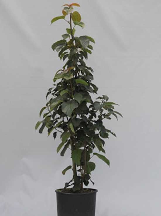 | Blatt: | Sommergrün, breit-eiförmig bis herzförmig, lindenartig, am Ende zugespitzt, grob gezahnter Rand, frischgrün, Herbstfärbung gelb, ca. 10 cm lang. |