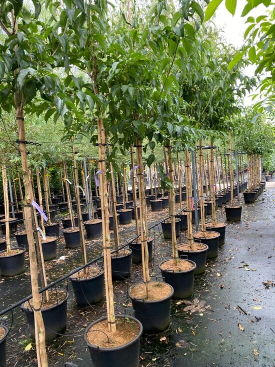 Hallo Frau Eberl, ja genau, bei den Stämmchen handelt es sich um eine Kopfveredelung.Das heißt, der Edelreising in diesem Fall Heptacodium wird auf eine Unterlage (Stämmchen) veredelt. Zwar nimmt der Stamm an Umfang zu, wächst aber nicht mehr in die Höhe, die Krone wächst aber weiter .