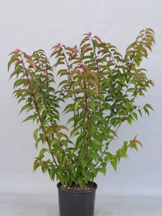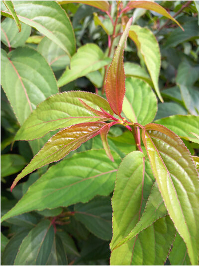 | Wuchs: | Mittelgroßer Strauch, breitaufrecht, später leicht gebogene und überhängende Zweige, bis zu 400 cm hoch und 250 cm breit |