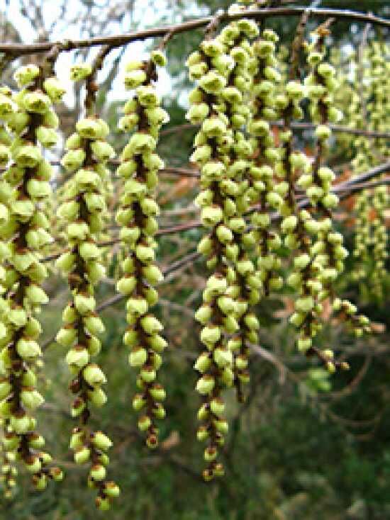 | Blüte: | Weißgelb, glockig, schweifartig in bis zu 10 cm langen und steifen Ähren herabhängend. |