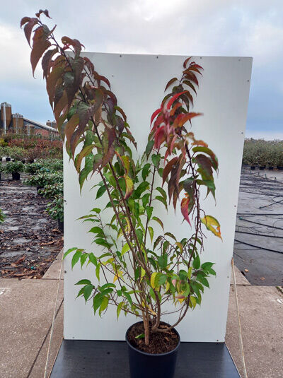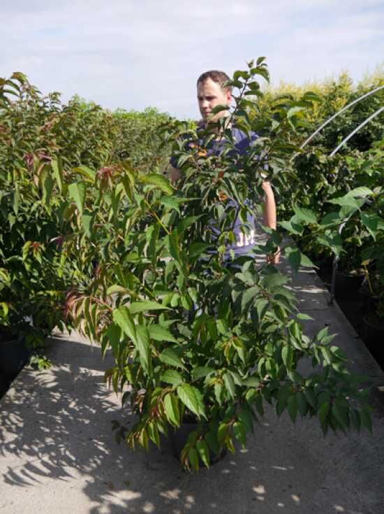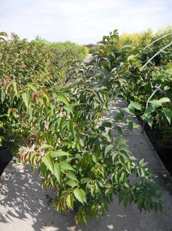 | Wuchs: | Mittelgroßer Strauch, breitaufrecht, später leicht gebogene und überhängende Zweige, bis zu 400 cm hoch und 250 cm breit. |