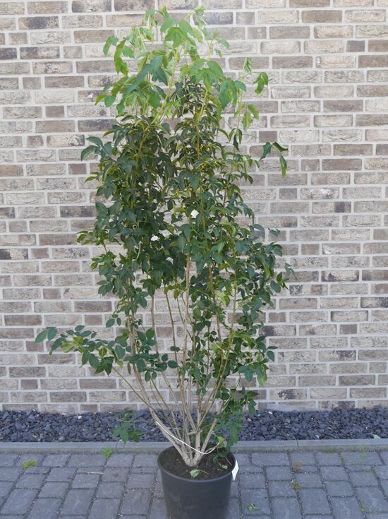 Wuchs: Mittelgroßer Strauch, straff aufrecht, später ausladend, bis zu 400 cm hoch und bis zu 250 cm breit.