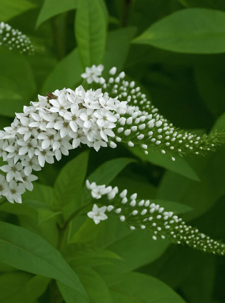 | Blüte: | Weiß, ährenförmig, groß, einfach, reichblühend, zierend |