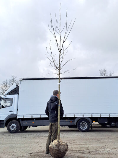 | Detaillierte Beschreibung: | Herkunft und Besonderheiten des Amberbaums ’Moraine‘Liquidambar styraciflua ‘Moraine‘ ist eine Züchtung des Amerikanischen Amberbaums, die 1980 durch die Siebenthaler Company (Dayton/Ohio) auf den Markt gebracht wurde. Langsamer Wuchs und schmale Form des Liquidambar styraciflua ‘Moraine‘Der Liquidambar styraciflua ‘Moraine‘ viele Ähnlichkeiten mit dem klassischen Amerikanischen Amberbaum auf, unterscheidet sich aber durch einen langsameren Wuchs und der geringeren Endhöhe. Der Amberbaum Moraine bleibt im Gesamtbild kleiner und etwas schmaler. Natürlicher Standort an Flüssen und feuchten StandortenDer Amerikanische Amberbaum Moraine wächst in seiner natürlichen Art im Südosten der USA. Dort trifft man ihn bevorzugt in Flusstälern und an feuchten Berghängen. Seit circa 300 Jahren ist der Amberbaum auch in Europa zu finden. Dort wird er auf Grund seiner wunderschönen Herbstfärbung wertgeschätzt und gerade als Solitärgewächs oder als Alleebaum genutzt. Harz dient der Herstellung von KaugummiDer Amberbaum Moraine ist in seiner Heimat als Forstbaum stark verbreitet und liefert wichtige Rohstoffe zum Beispiel für die Herstellung von Kaugummi. Hierzu wird das Harz (Storax) verwendet, welches süßlich schmeckt und duftet. Auch die Ureinwohner Nordamerikas wussten bereits über den Nutzen des Storaxes und verwendeten es zu diesem Zwecke. In den USA ist Liquidambar styraciflua auch unter dem Namen ‚Sweet Gum‘ bekannt. Er ist Mitglied der kleinen Familie der Altingiaceae. Wuchsverhalten des Amberbaums ‘Moraine‘Diese Selektion des Liquidambar zeichnet sich durch einen langsamen Wuchs aus. Liquidambar ‘Moraine‘ entwickelt sich zu einem wunderschönen, mittelgroßen Baum, der mit einer aufrechten, schlanken Linie überzeugt. Er erreicht eine Endhöhe von circa 12 Metern und wird bis maximal 10 Meter breit. Halboffene und eher schlanke Krone charakteristischDie Baumkrone wächst in jungen Jahren zunächst sehr schmal und pyramidal, verändert sich aber im Verlaufe des Wachstums. Sie entwickelt sich dann zunehmend in die Breite und zeigt sich mit einer wunderschönen, halboffenen Kronenstruktur. Dekorative Korkleisten zieren den StammLiquidambar styraciflua‘ Moraine‘ präsentiert sich mit einem markanten Stamm, der das einzigartige Gesamtbild des Amberbaums hervorhebt. Die jungen Triebe dieser Selektion treiben in einer grünbraunen Rindenfarbe aus, später zeigt sich die Borkenfarbe der ‘Moraine‘ mit einer graubraunen Farbgebung. Die Rindenstruktur ist tief gefurcht und wird von dekorativen Korkleisten geschmückt. Dies verleiht dem Amberbaum ‘Moraine‘ eine originelle und ansprechende Ausstrahlung, die durch das besondere Blattwerk unterstrichen wird. Blattwerk ist.... |