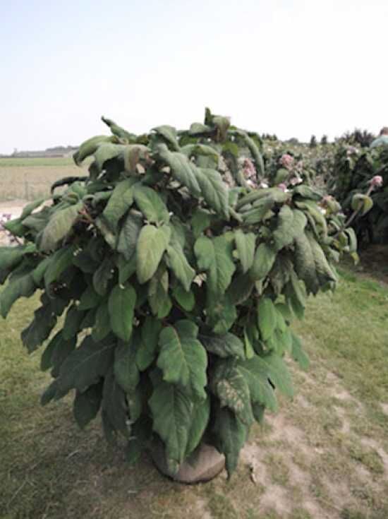 Eigenschaften: Die Hydrangea aspera sargentiana / Samt-Hortensie ist aufgrund der großen Blätter und der ansprechenden Blüten ein besonderes Zierelement. Sehr dekorative Blattstruktur, die diese Zierpflanze zu einen echter Hingucker machen.