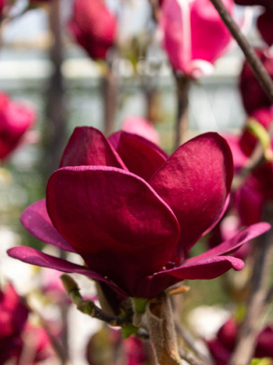 Die bis zu 5 m hohe Magnolia 'Genie' ® wächst straff aufrecht und eignet sich gut für kleinere Gärten. Die wunderschönen rot-violetten Blüten, welche einen Durchmesser von bis zu 15 cm haben...