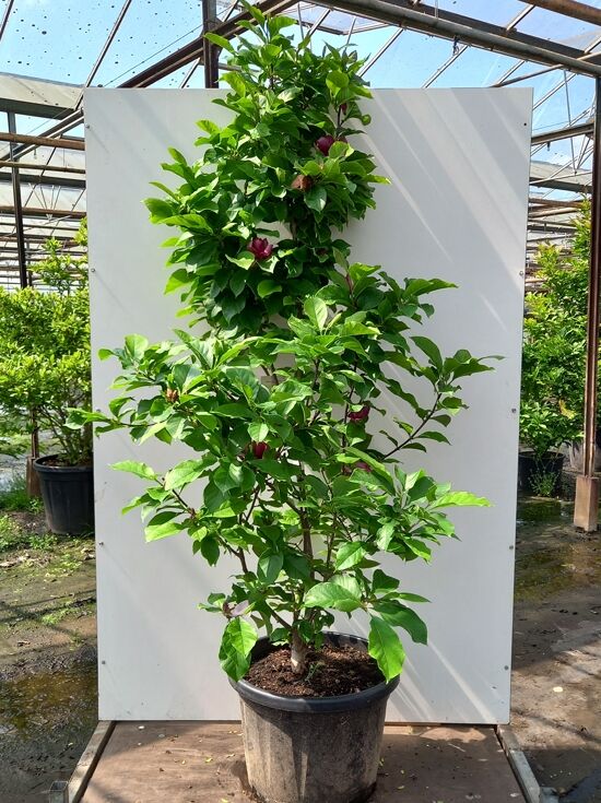 Die bis zu 5 m hohe Magnolia 'Genie' ® wächst straff aufrecht und eignet sich gut für kleinere Gärten. Die wunderschönen rot-violetten Blüten, welche einen Durchmesser von bis zu 15 cm haben...