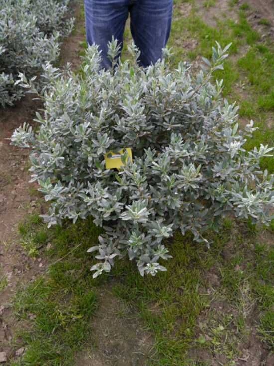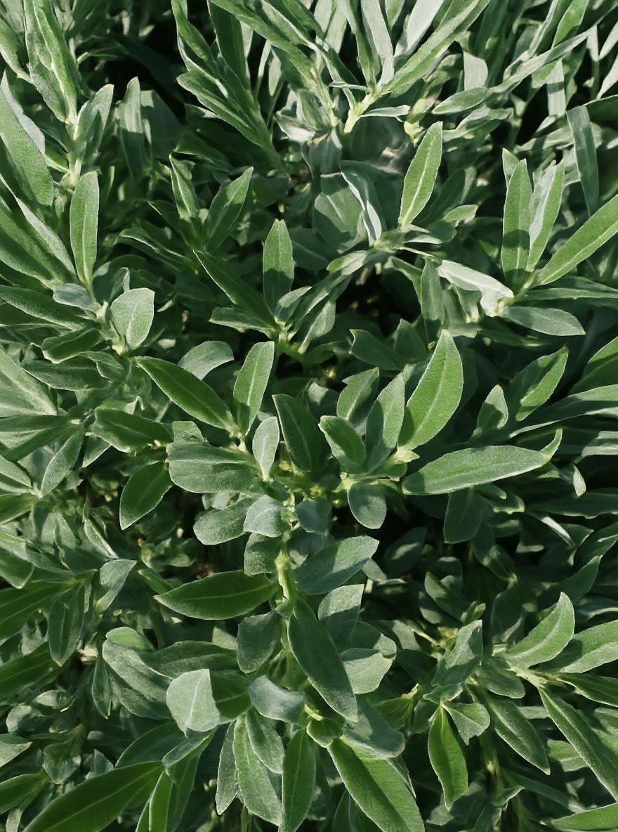 | Blatt: | Kleine längliche Blätter, bläulich-grün, silbrige Beharung an der Oberseite |