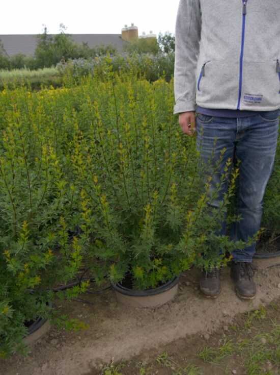 | Wuchs: | Kleinstrauch, rundlicher Wuchs, dicht verzweigt, bis zu 150 - 200 cm hoch und ähnlich breit, Jahreszuwachs bis zu 20 cm |