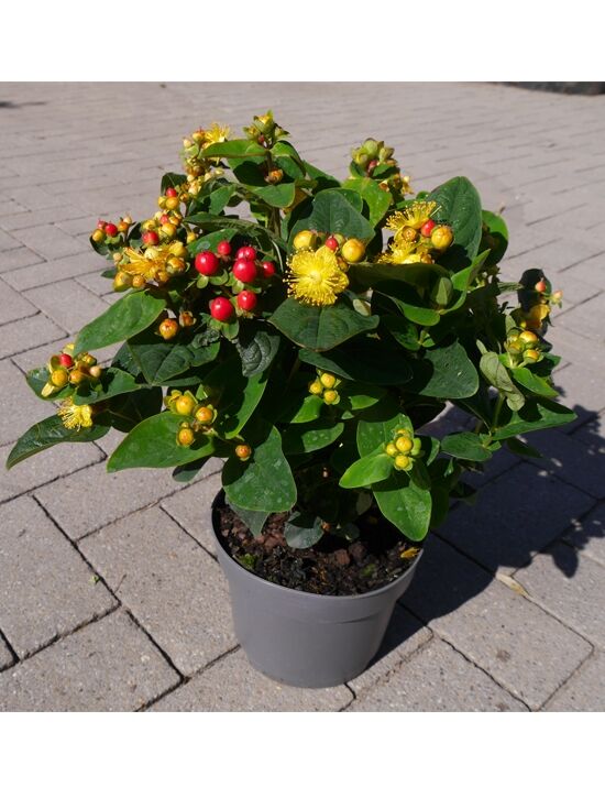| Eigenschaften: | Das Hypericum 'Miracle Attraction' (Johanniskraut 'Miracle Attraction') ist ein kompakter Zwergstrauch, der gerne für die Flächenbegrünung genutzt wird. Besonders an dieser Sorte sind die dekorativen, gelben Blüten sowie die auffallenden, roten Beeren. Häufig werden die Zweige samt Frucht für Blumensträuße verwendet. Insgesamt robust und schnittfest.. |