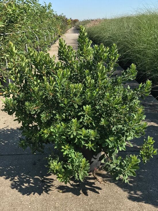 Wuchs: | Kleiner Strauch, straff aufrecht, dicht verzweigt, im Alter rundlich und kompakt, 80 bis 150 cm hoch und breit |