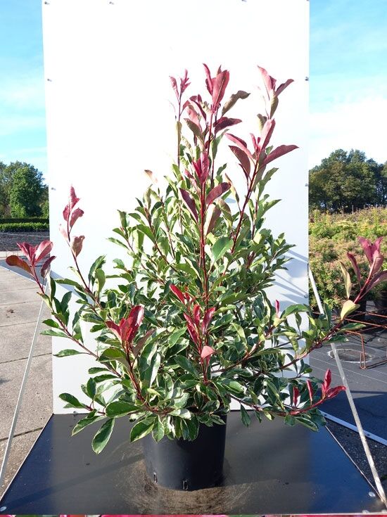 | Name Botanisch: | Photinia fraseri 'Pink Marble ®'. |