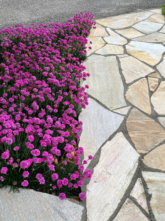 Die Armeria maritima 'Düsseldorfer Stolz' (Grasnelke) überrascht im Frühling mit wunderschönen purpurroten Blütenköpfen, die wie kleine Blütenbälle wirken. Der ursprüngliche Küstenbewohner...
