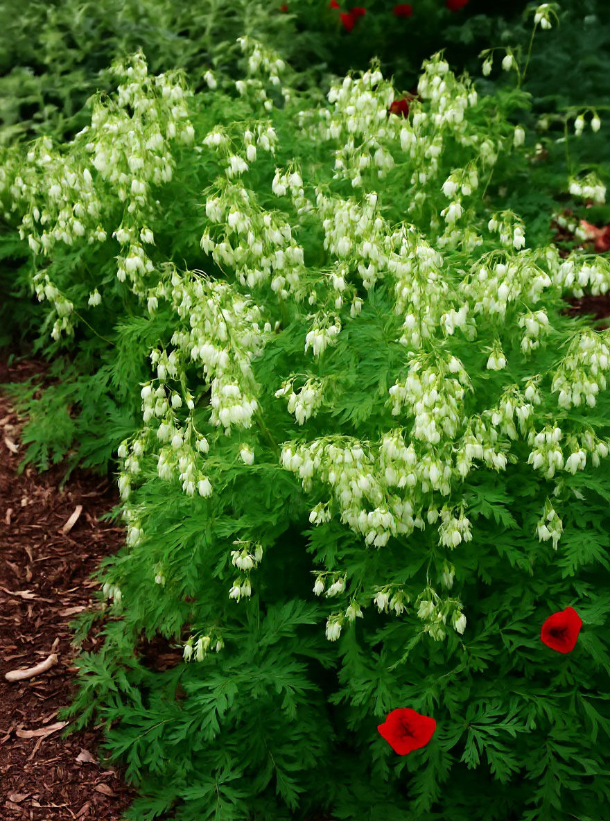 Blütenpracht und Laubwerk der Dicentra eximia 'Alba'