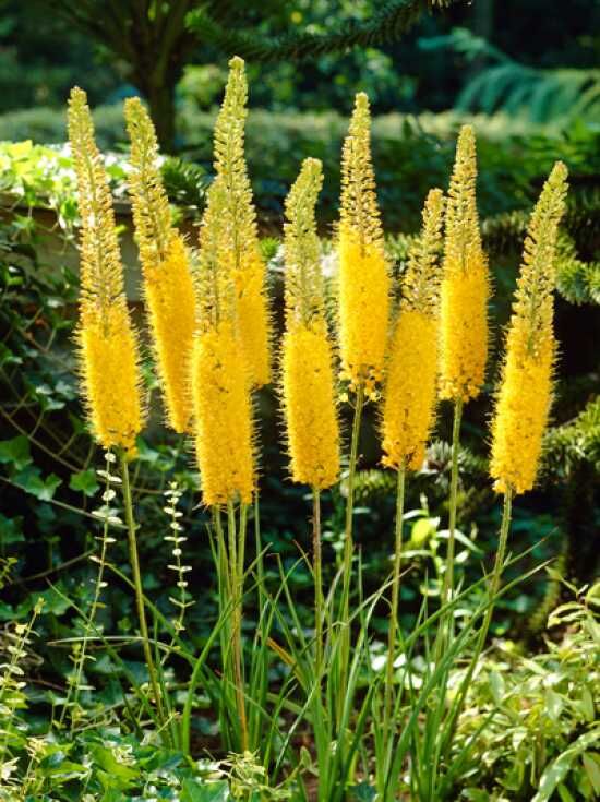 | Eigenschaften: | Der Eremurus stenophyllus (Steppenkerze / Afghanistan-Lilienschweif) bevorzugt einen sonnigen Standort und einen eher trockenen Untergrund, auf dem sich die flauschig wirkenden Kerzenblüten optimal entwickeln können. Die Blüten zeigen sich in einem fröhlichen kanariengelb und sind mit vielen zarten Staubgefäßen versehen. Die grazilien Blüten setzen auch als Schnittblume ein optisches Highlight. , Im Garten hingegen fühlen sie sich in der Fels-Steppe oder der Freifläche mit Wildstaudencharakter wohl. 4 Pflanzen pro Quadratmeter sind empfehlenswert. Pflegetipp: Vor Winter- und taunässe schützen. |